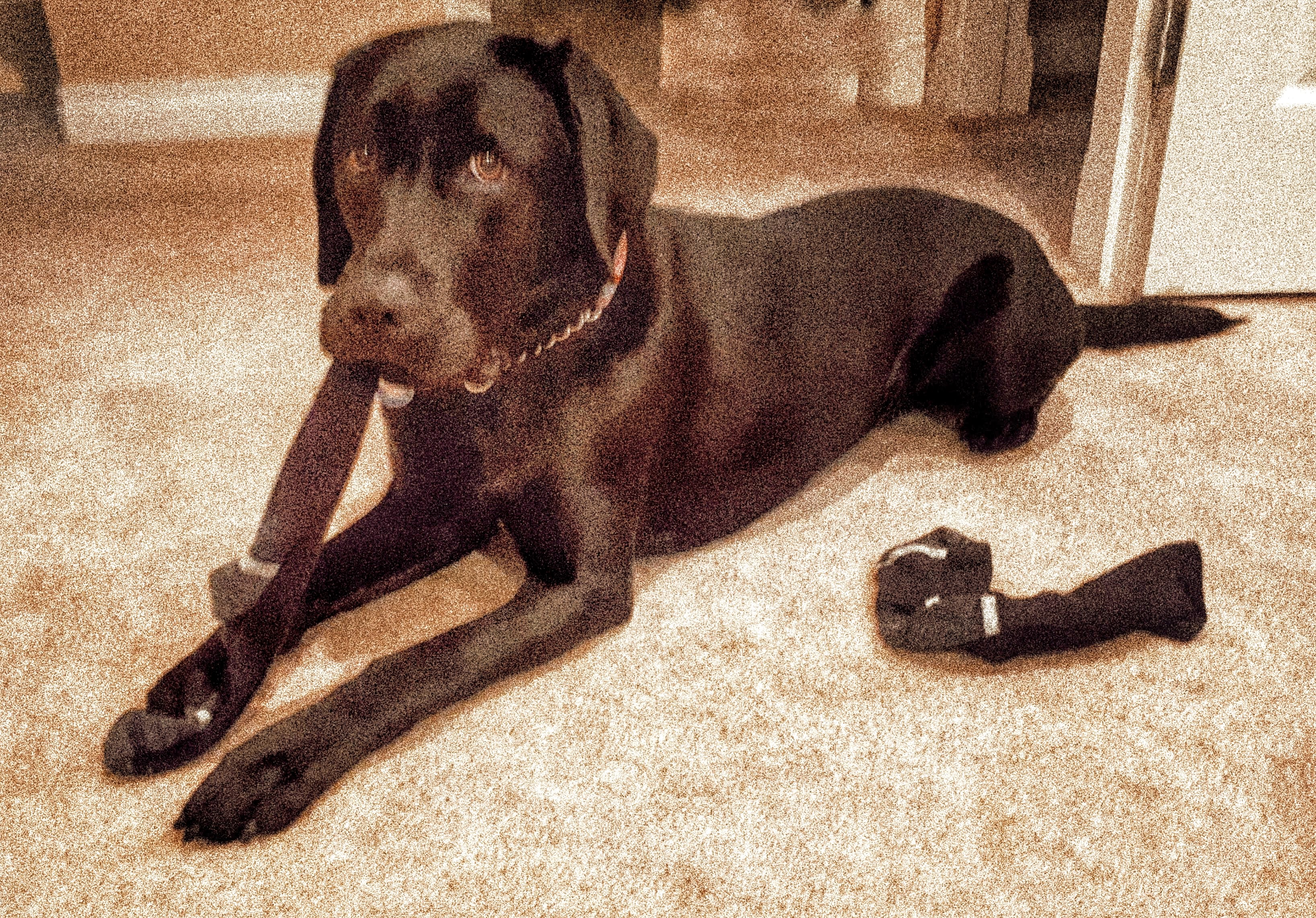 In happier memories, what follows is a quick clawing at the feces, which with some dogs comes in a few scoops. Our new cottage dog, however, is a scavenger. This means her poop comes out like an exploding platter of stringy cheddar-webbed taco chips, a consistency that can lead to a boomerang effect that needs no further description.